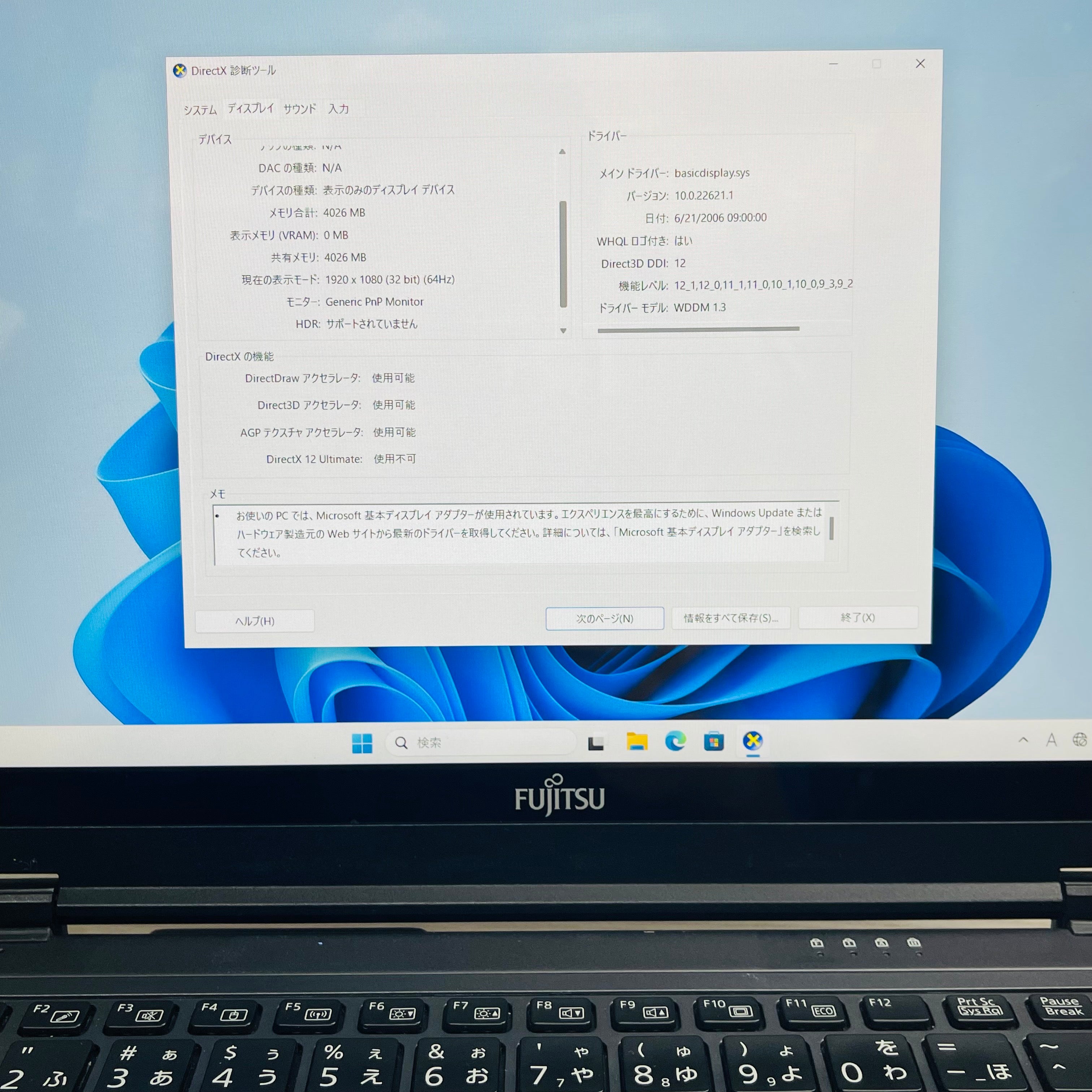 | 外部ディスプレイ表示(注3) | HDMI最大4096×2160ドット、 アナログRGB 最大1920×1200ドット / 最大1677万色(注14) |